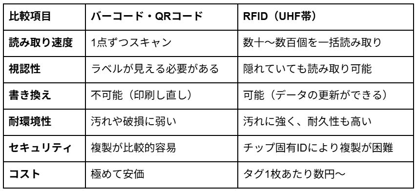 一方で、全ての現場でRFIDが正解とは限りません。「管理対象が1日数件程度と極めて少ない」「金属や水の影響を排除するコストが合わない」「単価数円の超低価格商材」などの場合は、従来のバーコード管理が適していることもあります。