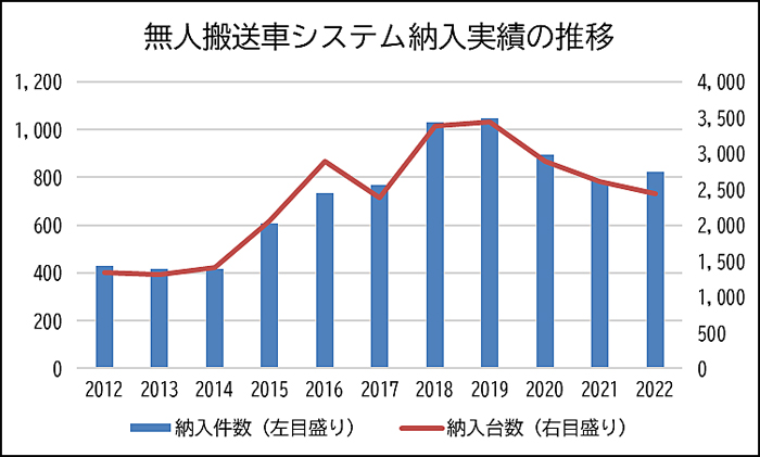※出典:一般社団法人日本産業車両協会 2023年の無人搬送車システム納入実績